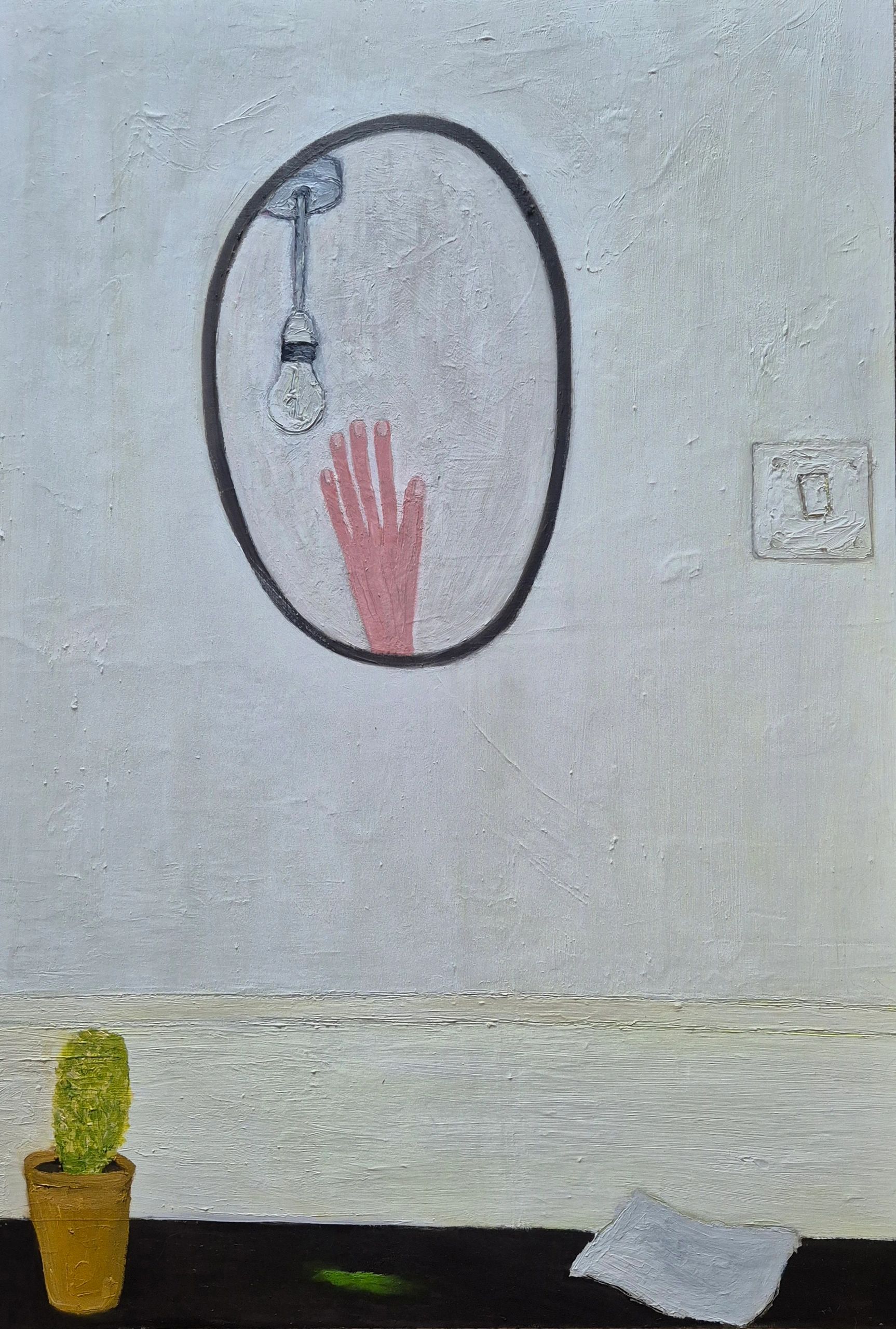 Self- portrait in Mirror I, 100 x 70 cm, oil on canvas, 2025, Crosscurrents, Herman's Auction House, Dublin. ( private collection)